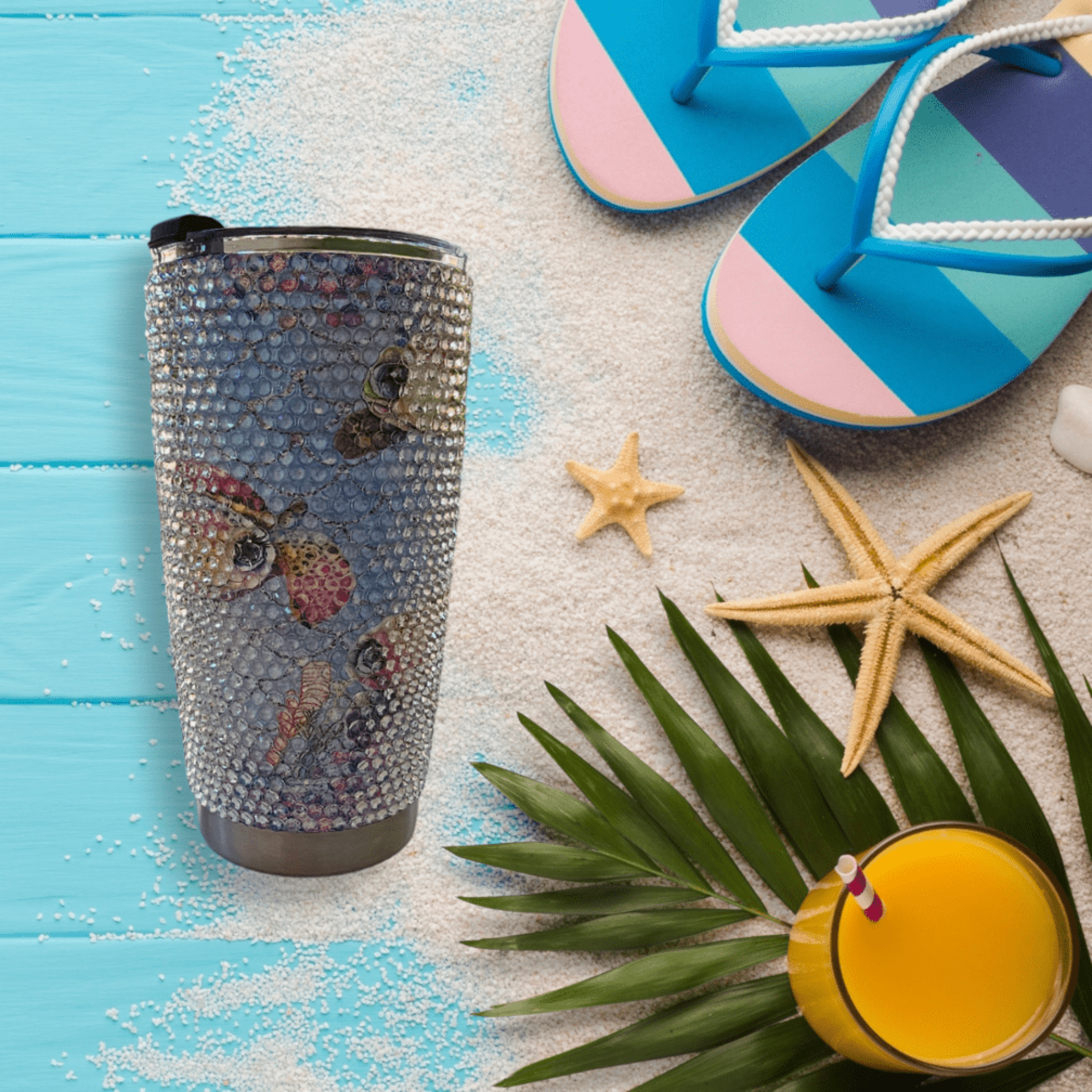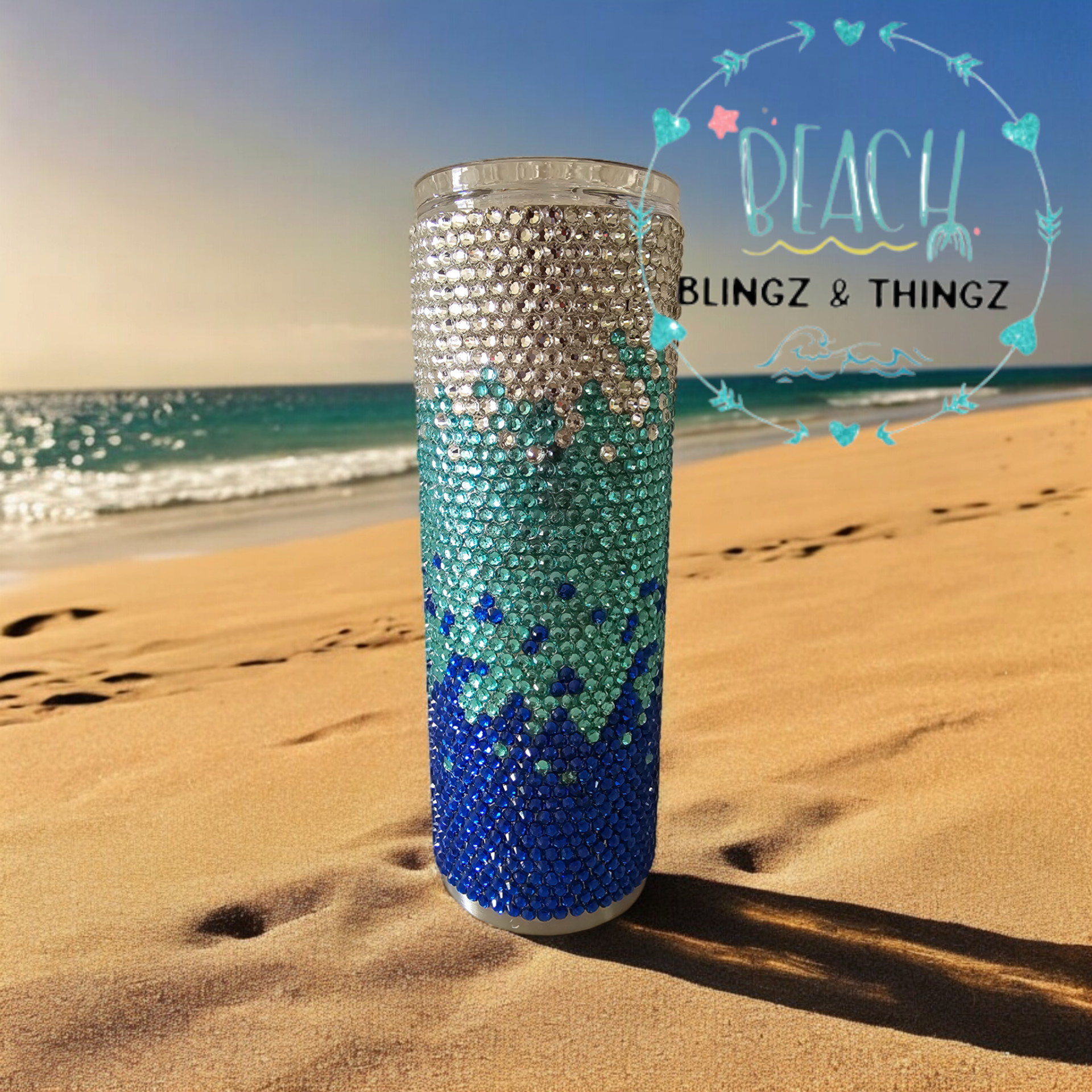 Beachy bling tumblers come in a variety of sizes and designs, which make them the perfect blend of style and functionality, designed for those who love a touch of sparkle while enjoying their favorite beverages. These tumblers feature vibrant colors reminiscent of sun-soaked beaches and shimmering ocean waves.
