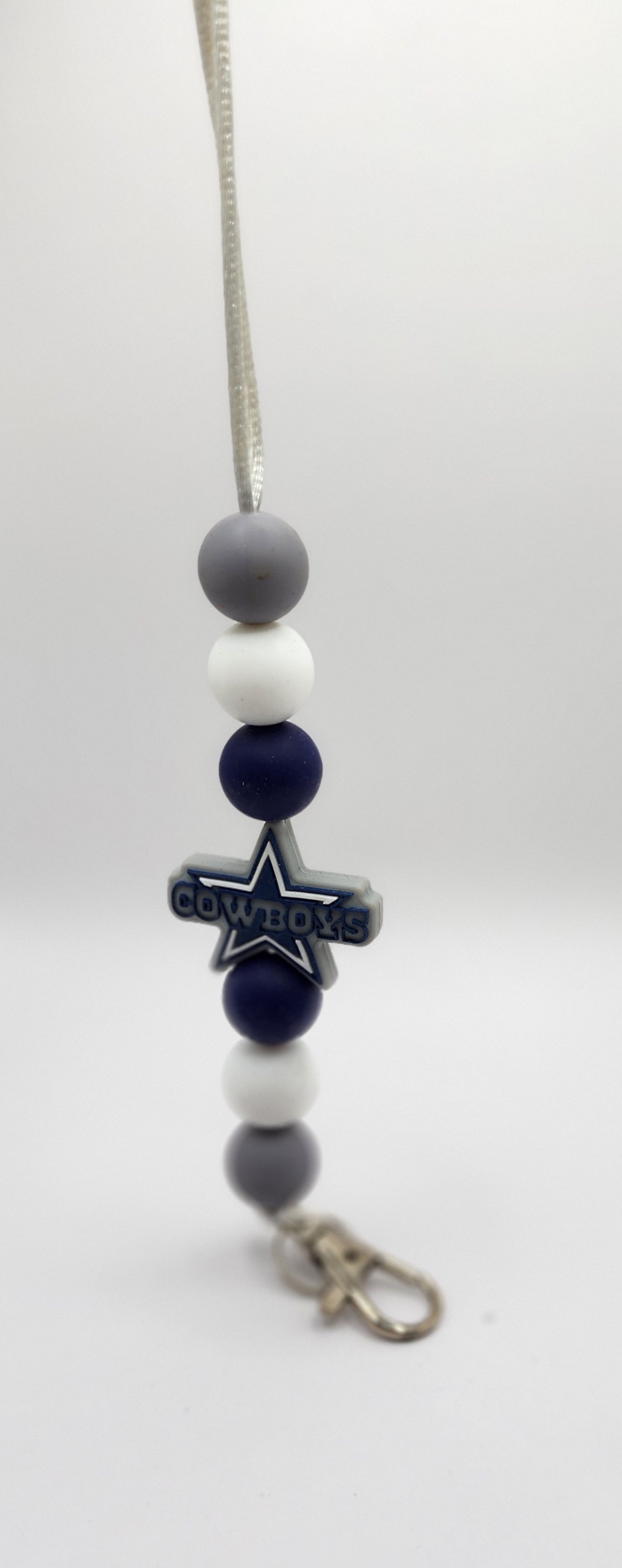 The focal (primary) bead on this lanyard features a Texas team and reads the team name.