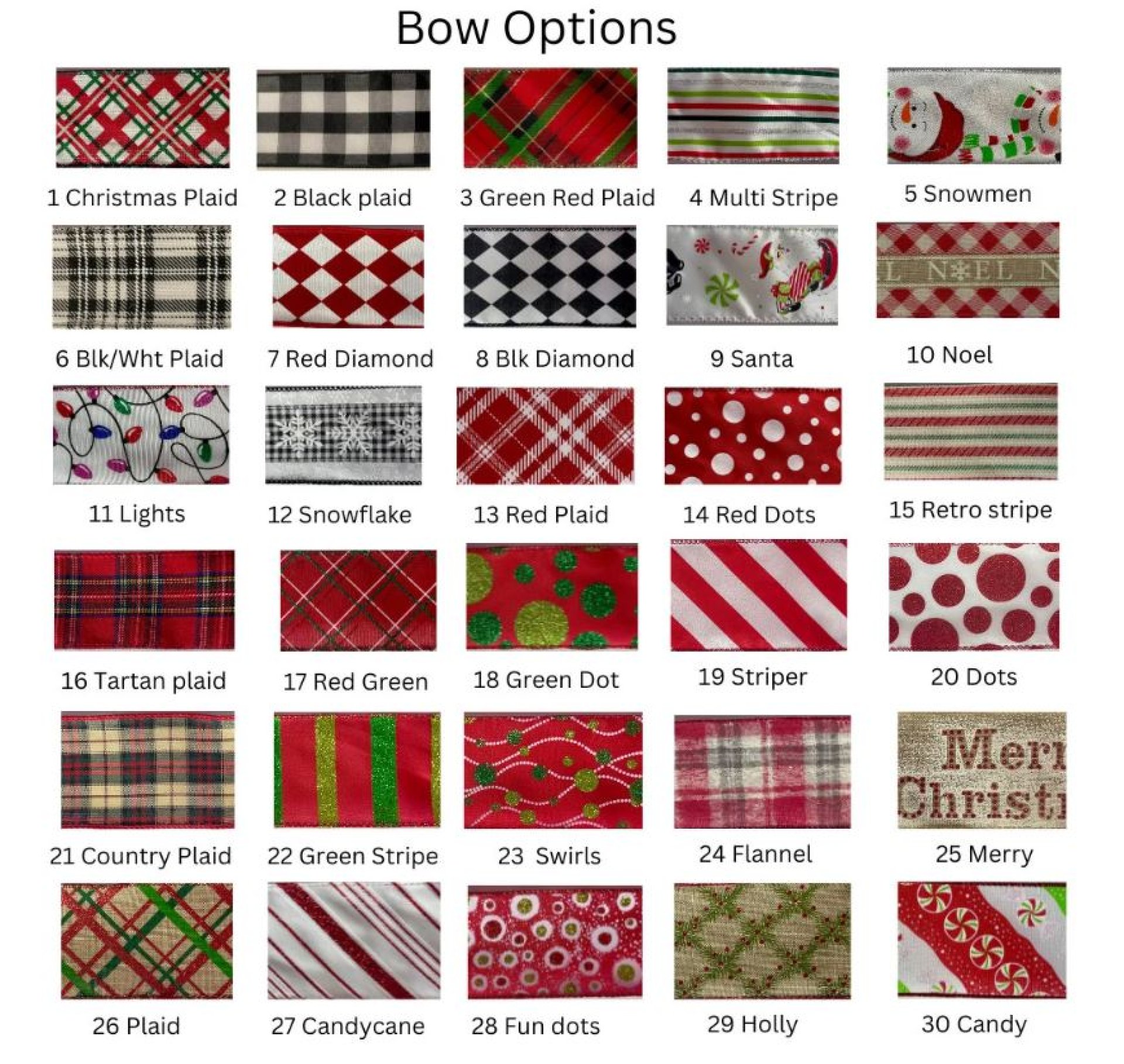 *Select ribbon for bow from ribbon options shown in photos.