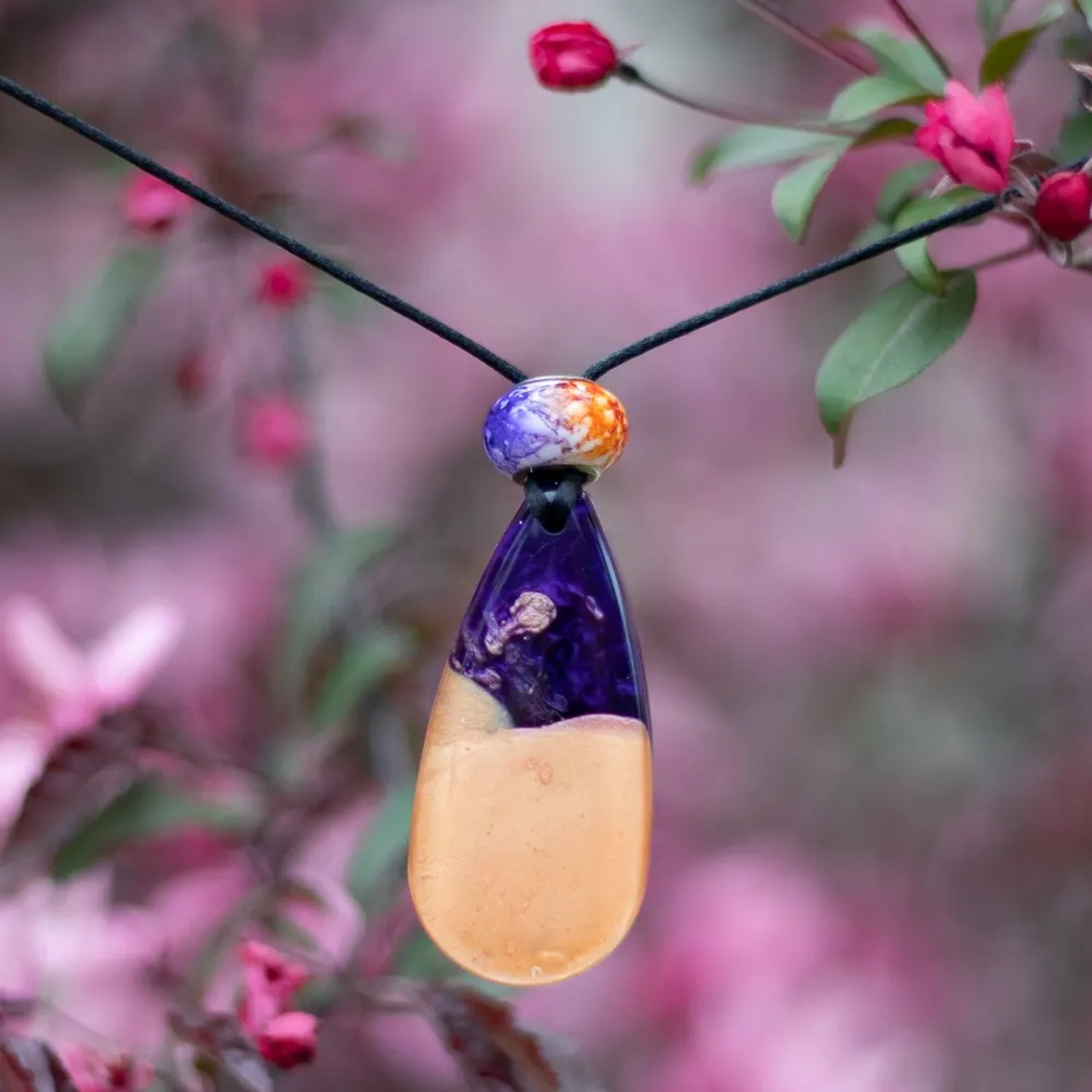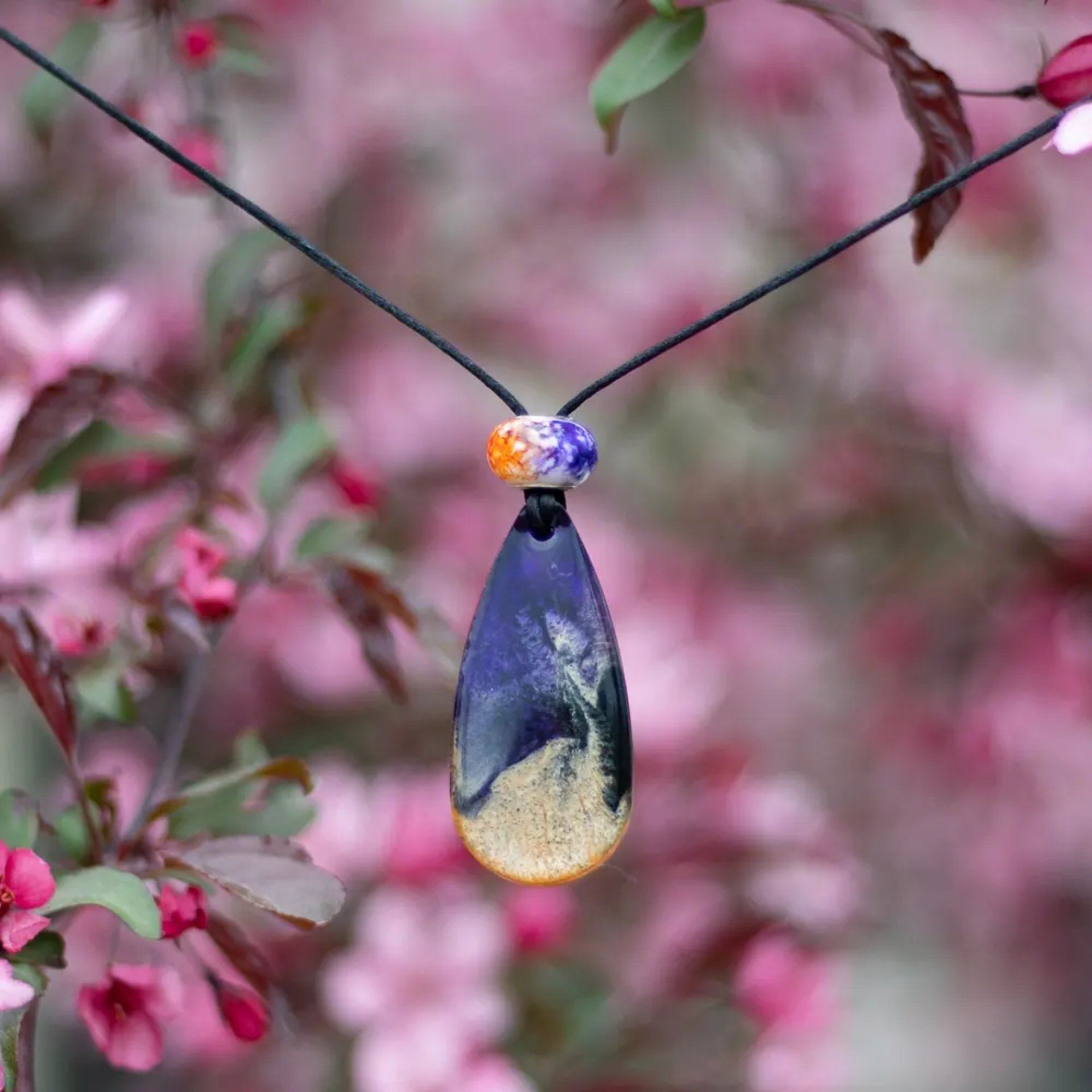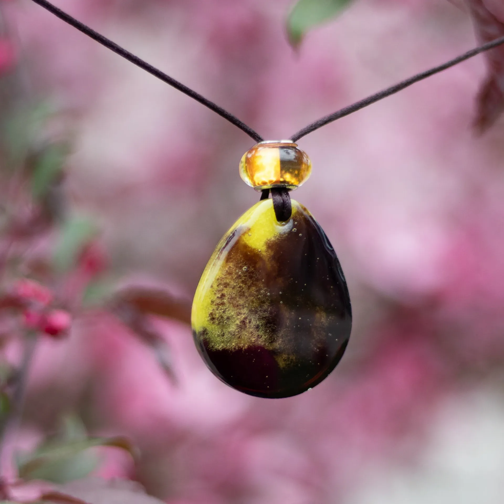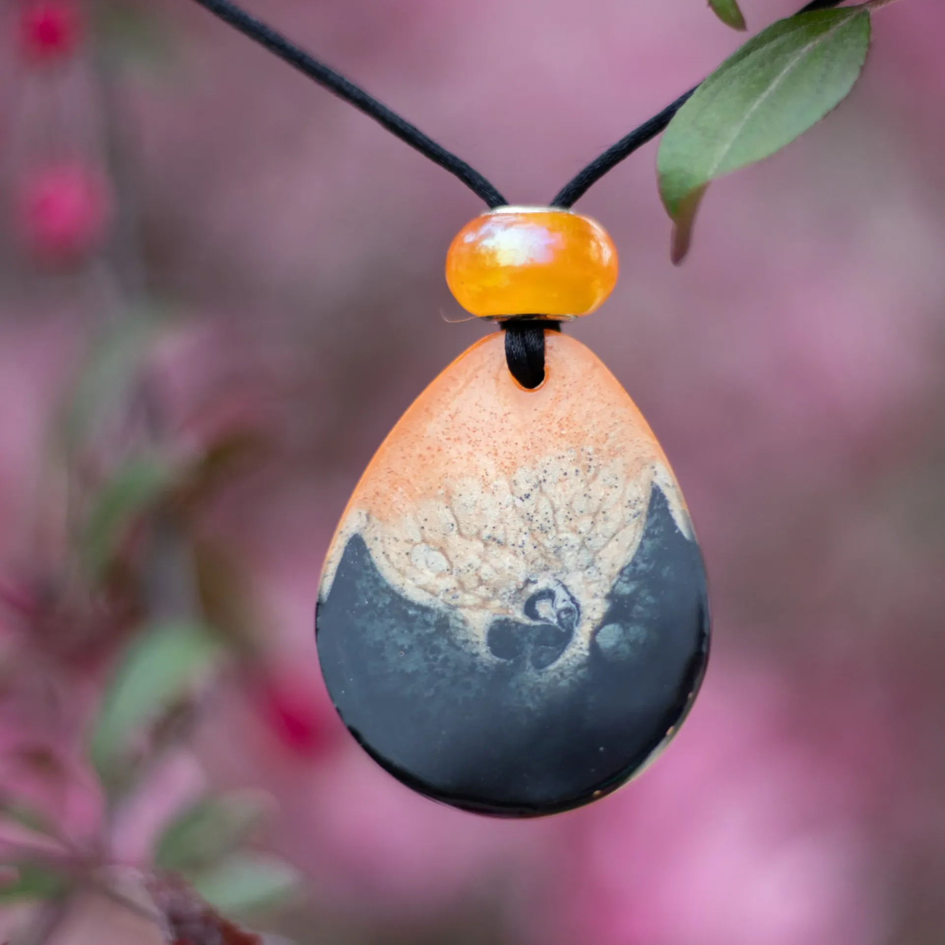 All pendants are on a fabric code with slip knot, for easy adjustment to the length. Length of code can be requested and clasp canbe added for no extra charge.