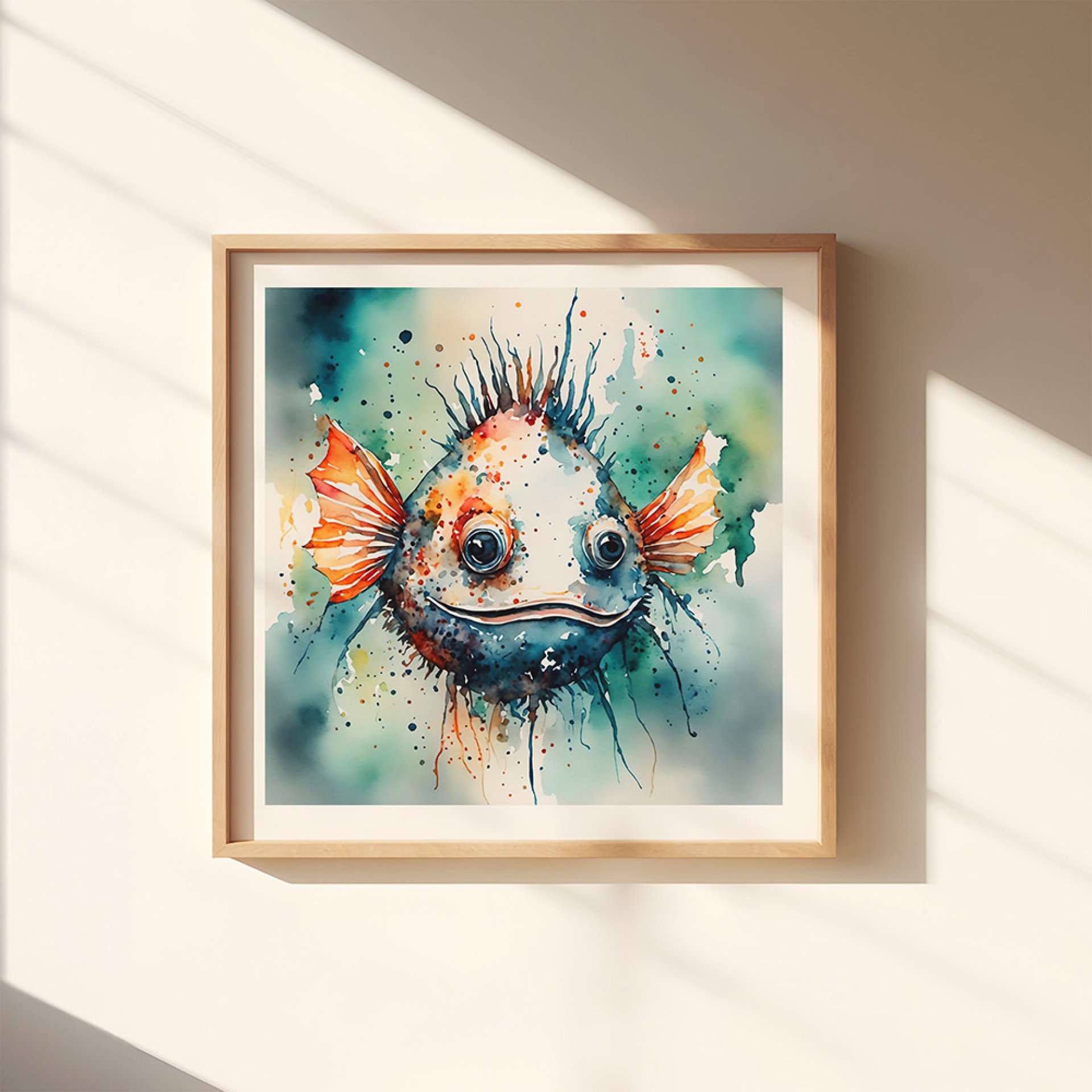 Add a touch of whimsy and humor to your home decor with our "Radiant Grin" blow fish art print. This unique piece features a quirky, one-of-a-kind design that is sure to make you smile. Embrace the beauty in the "ugly" with this original artwork.